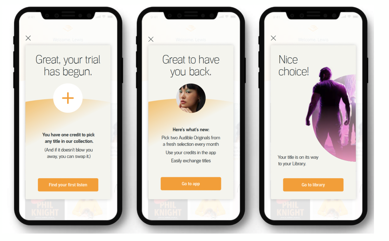 While at DixonBaxi, I worked with Audible’s in-house team in New York to reimagine the first 60 days of Audible membership. Shifting the brand from ‘audiobook distributor’ to ‘entertainment experience’, we developed a new ToV that was less transactional and more emotional – before letting it loose across the app and beyond.